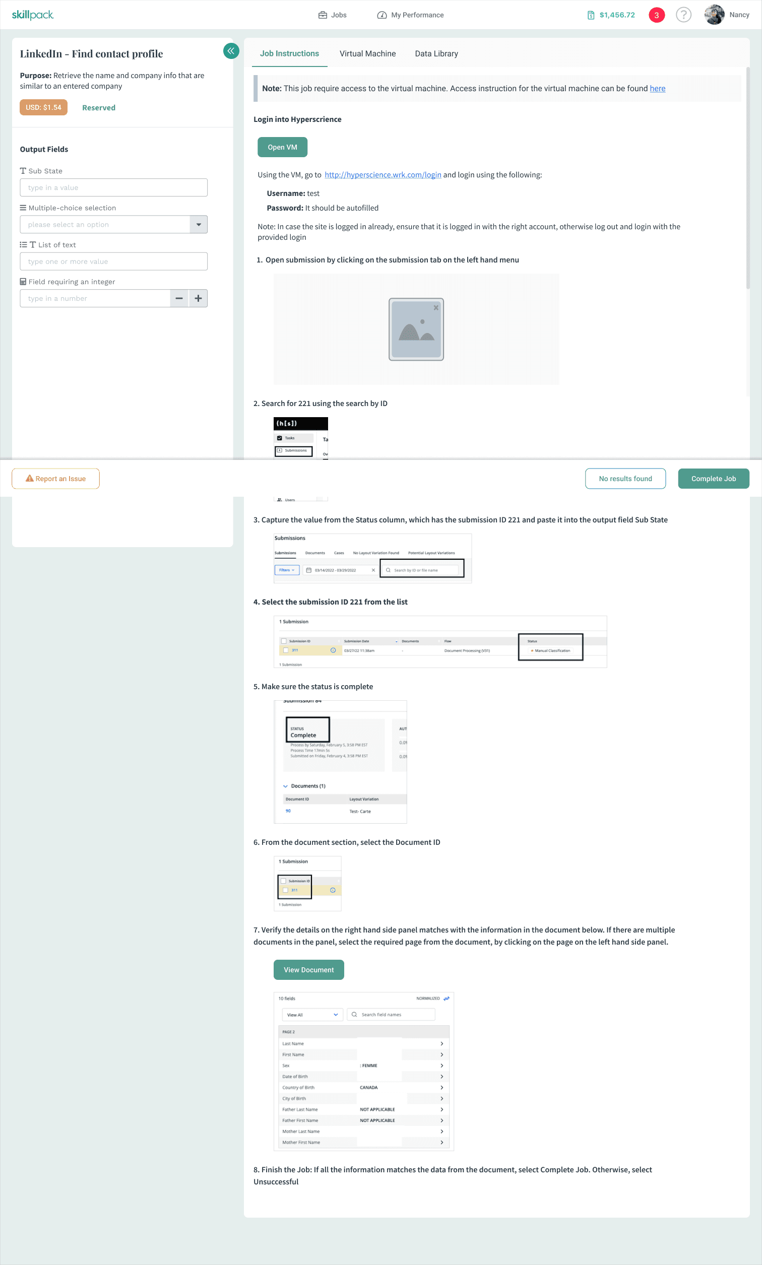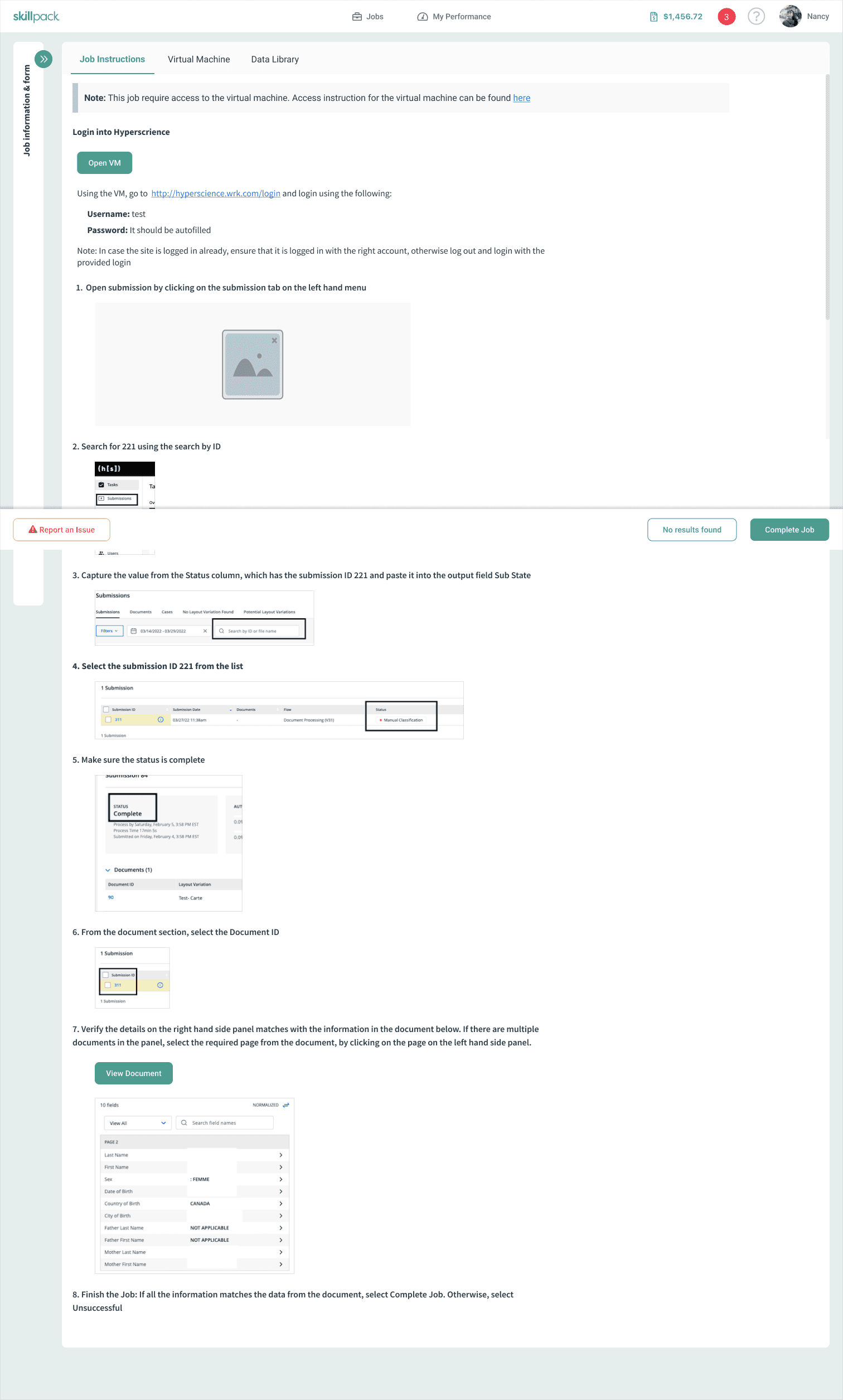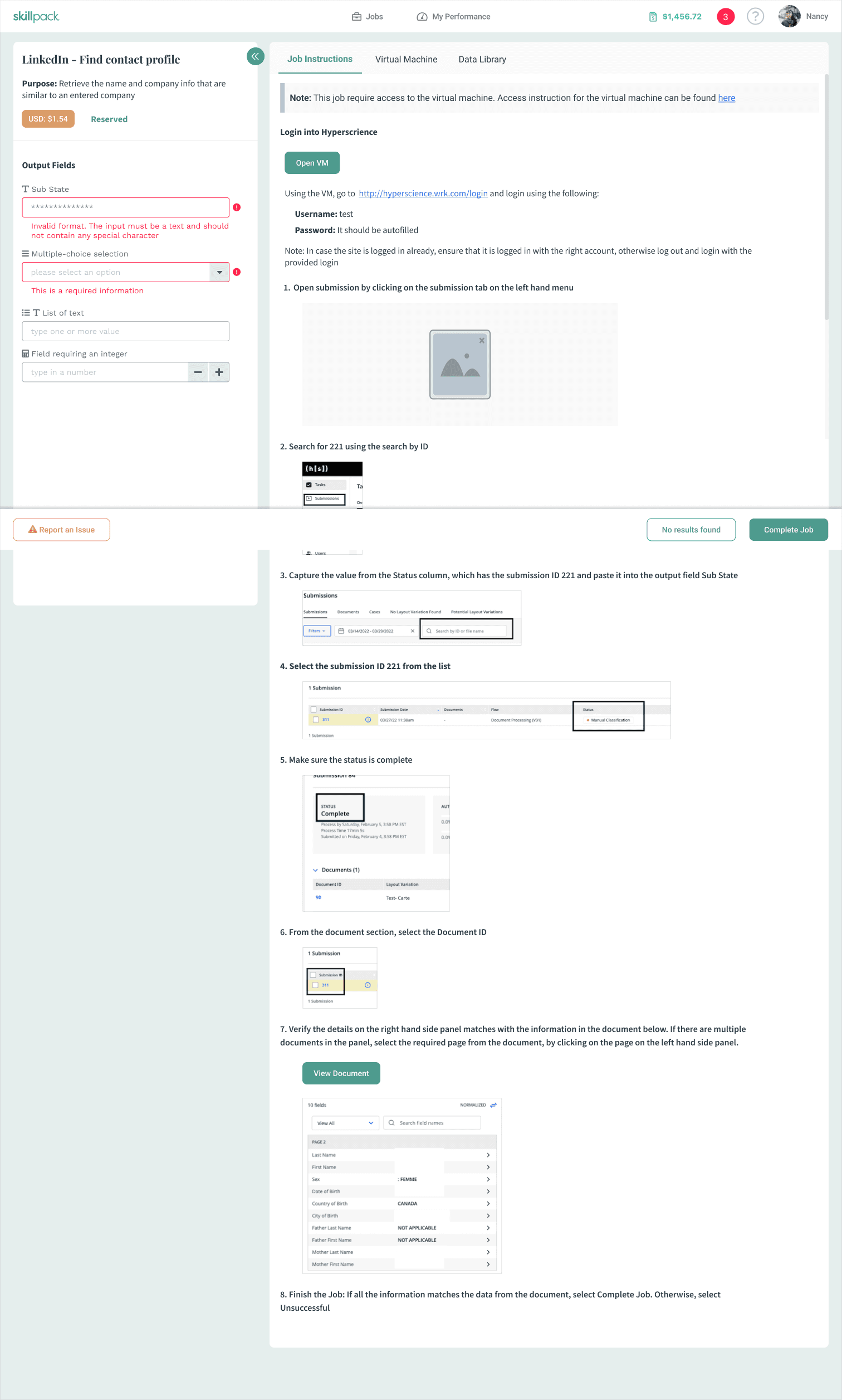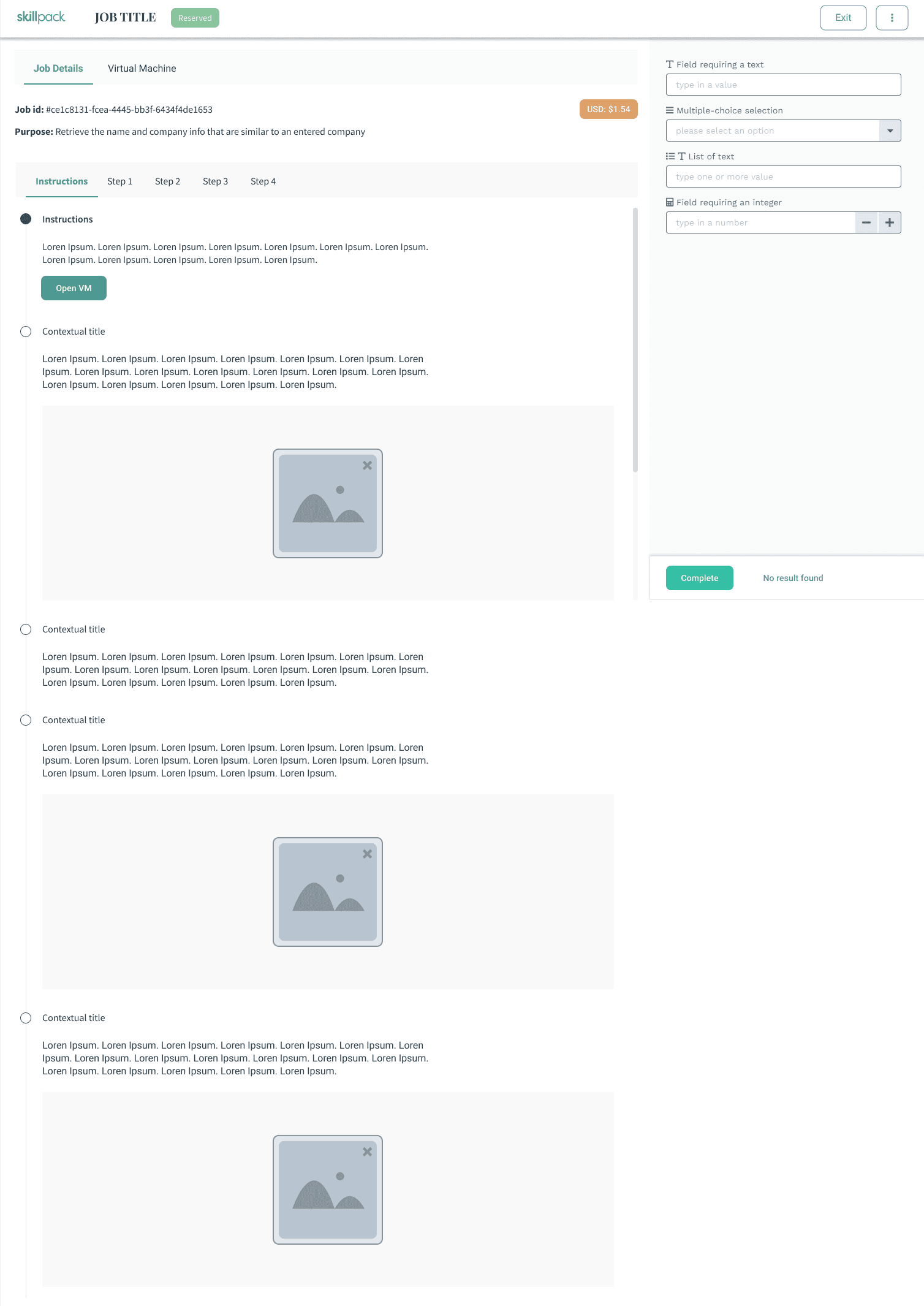 A guided experience on the steps that the Skillpacker need to take in order to complete the job, that reduces the cognitive load, provide clear contextual information at each step.